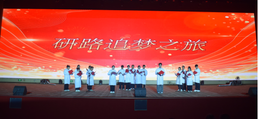 《医路长明》以医学成长故事为蓝本,通过舞台演绎展现医员工从迷茫到坚定的蜕变,诠释了医学誓言;研究生们以《研路追梦之旅》的深情朗诵,分享科研与临床结合的“研路”故事;优雅的舞姿《爱的圆舞曲》传递着青春的美好与协作的力量;动感的现代舞《Yonce like Jennie》为晚会画上圆满句号。