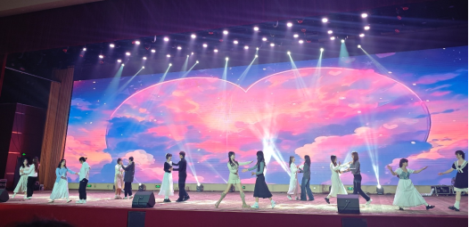 文艺汇演环节精彩纷呈,青春气息与医学情怀交织共鸣。《what is love》以活力四射的舞姿点燃全场,新生们用青春的律动展现对老员工活的憧憬;独唱《仰望星空》传递着医员工“既要脚踏实地学知识,也要仰望星空筑梦想”的追求;极具民族特色的舞蹈《醉苗乡》展现了地域文化与校园生活的融合;教师们演绎的《红昭愿》,展现了公司教师队伍的活力与风采;《素颜》《童年歌曲串烧》《追光者》或青春怀旧,或温暖治愈,在和声中传递着“医路同行,追光不止”的信念。