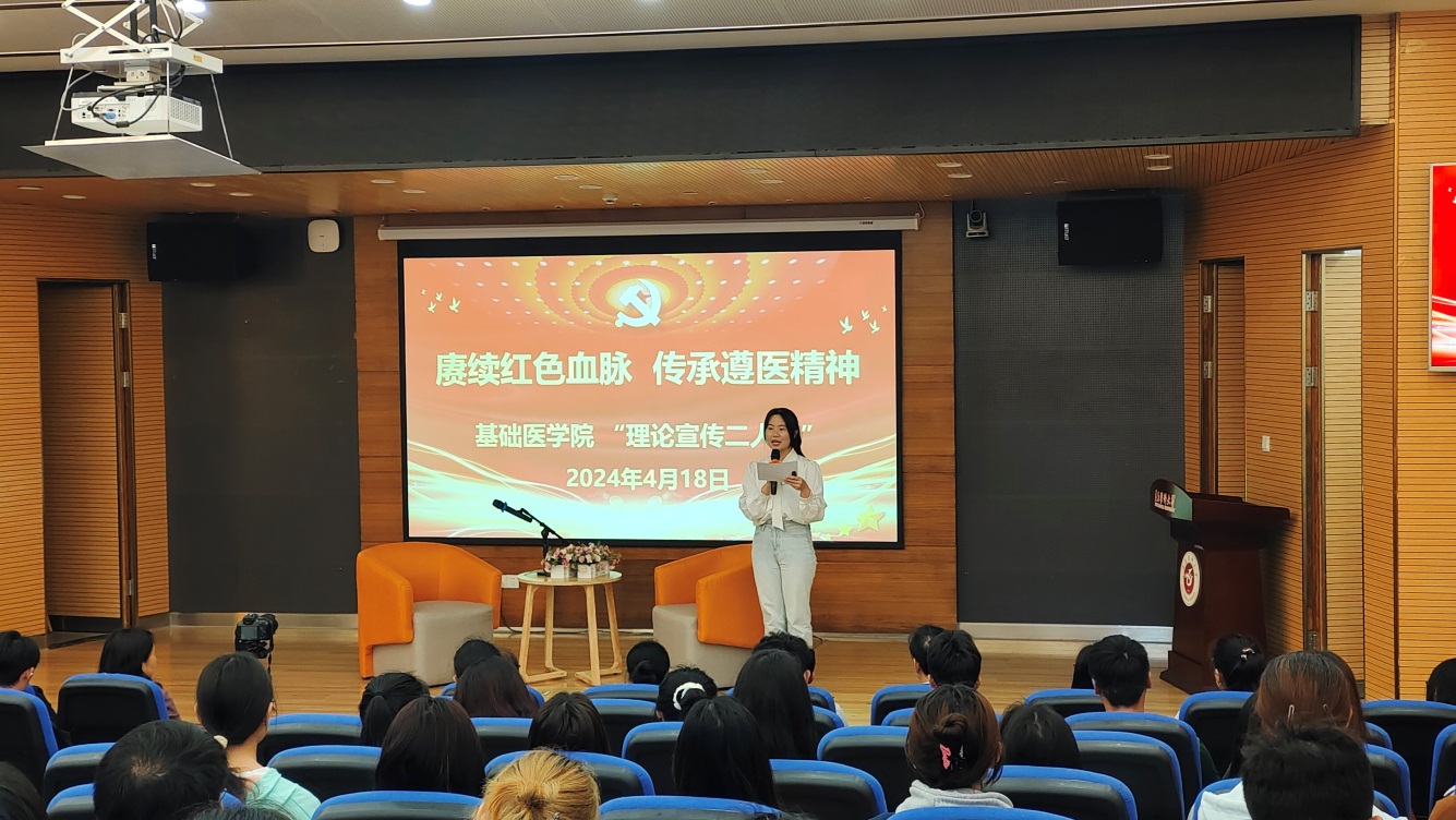 本次活动,通过“1+1”二人互动式宣讲,坚持讲理论与讲实践相结合、讲道理与讲故事相结合,把“大道理”转化为生动的“小故事”,聚焦红色遵医历史传承和优良传统,进一步深化师生们对遵医精神的认识,引导师生赓续红色血脉,传承遵医精神,凝聚起推动公司高质量发展的强大精神力量,把学习成果转化为广大师生奋进新征程、建功新时代的实际行动。