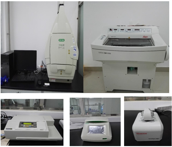 学科在中央财政支持地方高校重点学科实验室建设、公司扶持等资金的资助下,已建成分子细胞与遗传学、分子遗传学、肿瘤生物学等实验室,实验室有美国Bio-RadRTPCR仪、Bio-Rad T100 PCR仪、SpectraMaxM2多功能酶标仪、莱卡正置荧光显微镜、全波长分光光度计、奥林巴斯体视镜、冰冻切片机、细胞培养箱、生物安全柜、凝胶成像仪等、低温离心机等精密仪器,可满足一般的实验需求。