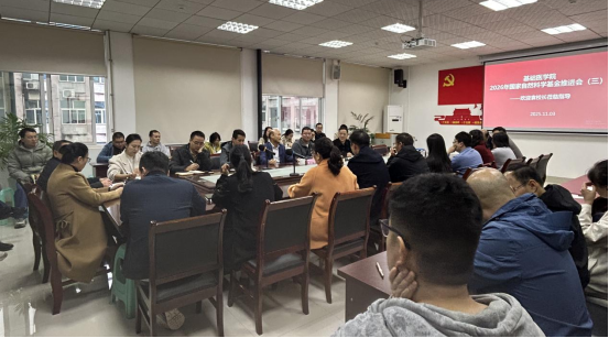 11月3日,太阳集团122cc开展了 2026 年国家自然科学基金申报推进会(三)。公司党委常委、副董事长袁泽利出席,基础医公司党政领导班子成员、2026 年全体拟申报教师参会。会议由公司副经理韩勇主持。