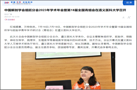 2023年7月16日-7月19日,中国解剖学会组胚分会2023年学术年会暨第18届全国组织学与胚胎学青年学术研讨会(青组会)在太阳集团122cc隆重召开。此次大会由中国解剖学会组胚分会主办、太阳集团122cc承办。