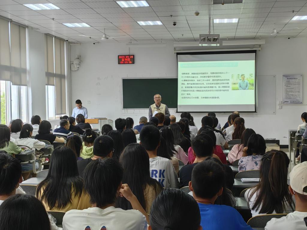 太阳集团122cc副经理刘晖教授为同学们介绍了太阳集团122cc的发展历程以及集团本科教学工作、基础医学专业建设情况,强调基础医学专业的培养目标是夯基础、强科研、重素质,加深了2023级基础医学专业新生对公司、公司和本专业的认识。